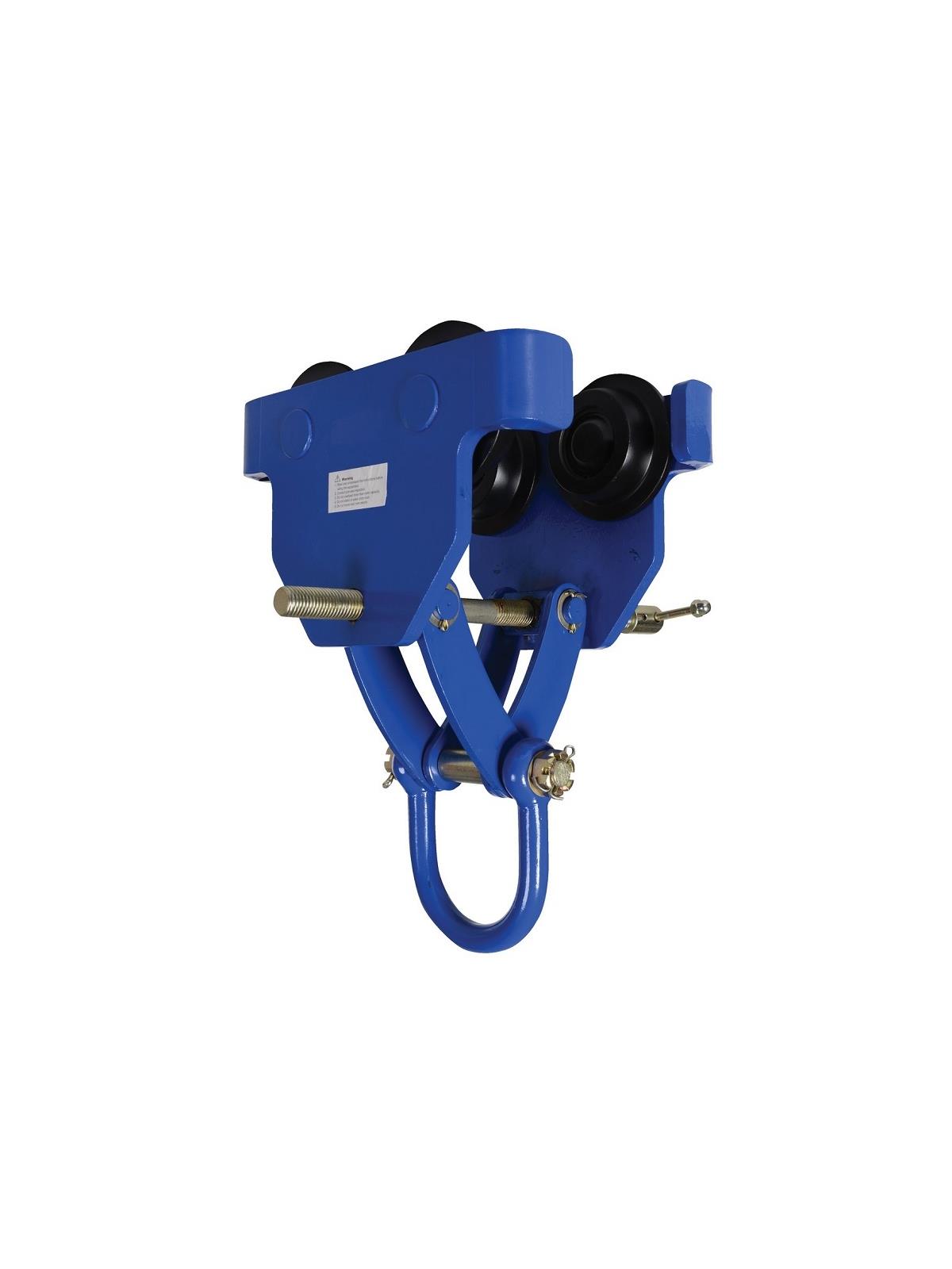 Designed to easily adjust to the width of virtually any S, H, W, and M type I-beam. Width is adjusted with manual screw mechanism. Includes locking ring to prevent trolley width from changing accidentally. Manual screw mechanism may also be tightened to prevent trolley from moving (similar to a Beam Clamp). Each trolley includes four rollers with sealed bearings for long life. A lifting eye is located at the bottom of the trolley for attaching a hoist (sold separately). Steel construction and painted finish. FOB Shipping Point.