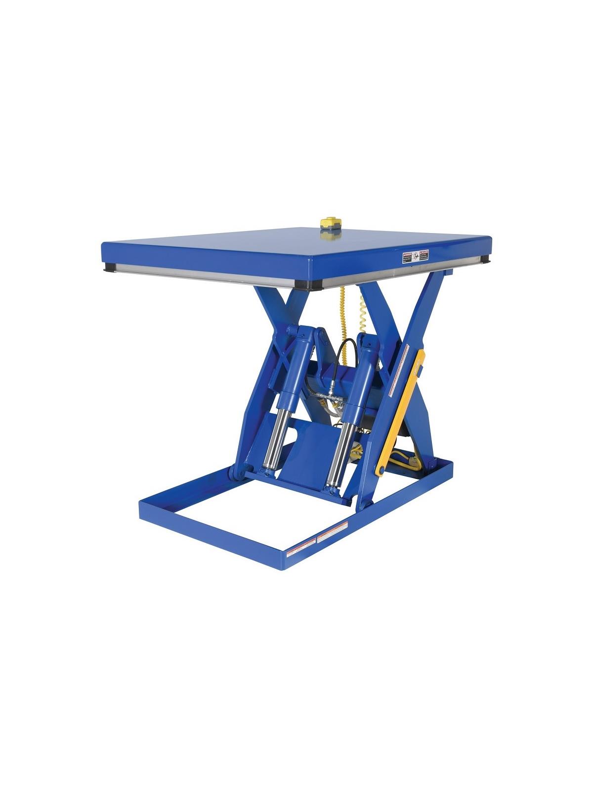 Hardened pins reduce wear. Strong chrome-plated piston cylinders resist rust and corrosion. Cylinder is honed hydraulic tubing. Safety toe guard automatically stops platform if lift comes down on toe or other objects - meets OSHA requirements. Emergency lockup automatically locks platform if hydraulic pressure is inadvertently lost.  FOB Shipping Point.