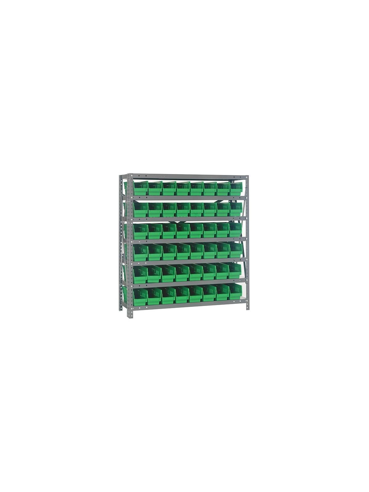Rugged 350 lb. capacity per shelf, standard shelving unit will keep parts organized and readily accessible. Gray enamel finish will not rust or corrode. 12-HQSB100, 8-HQSB101, 5-HQSB102, 4-HQSB107, 3-HQSB109 fit across a standard 36"W x 12"D shelf. 8-HQSB103, 5-HQSB104, 4-HQSB108, 3-HQSB110 fit across a 36"W x 18"D shelf. Bins are available in Blue, Yellow, Red, Green, Ivory or Black. FOB Shipping Point.