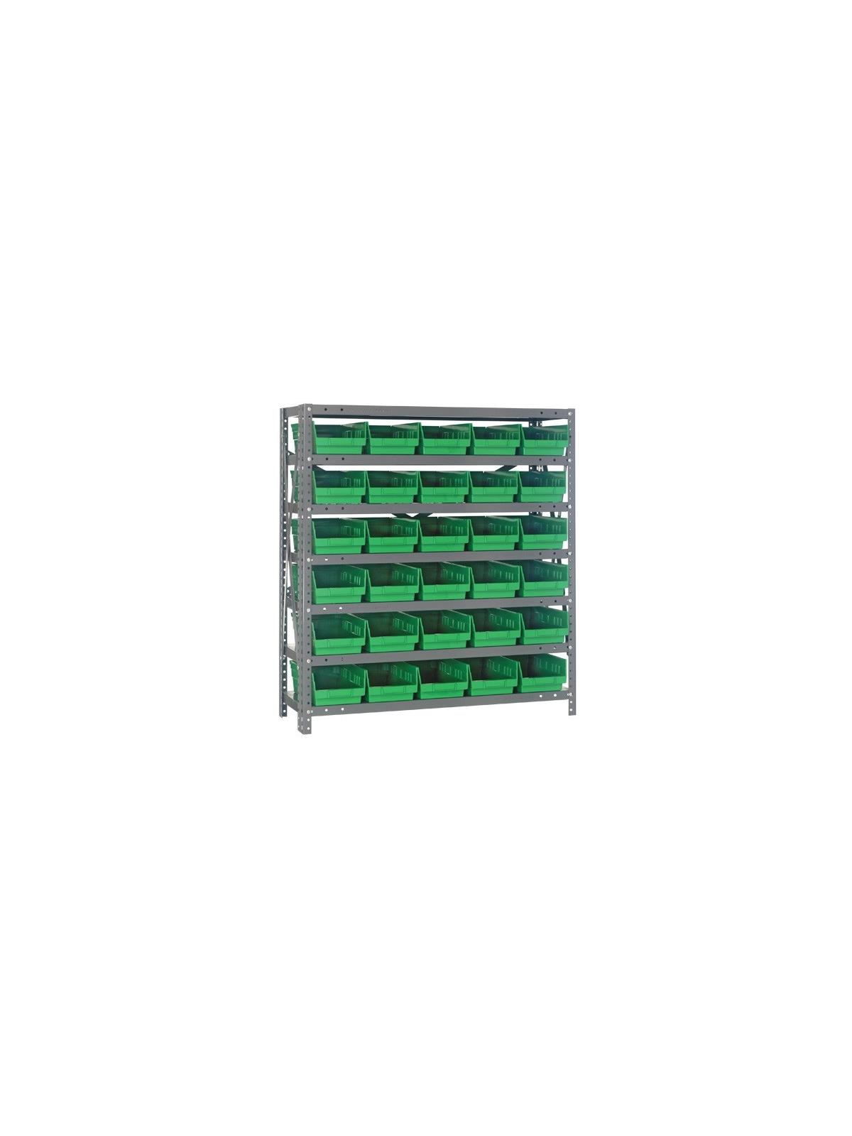 • Economical bin storage system includes durable Plastic Shelf Bins and a 36"W standard shelving.
