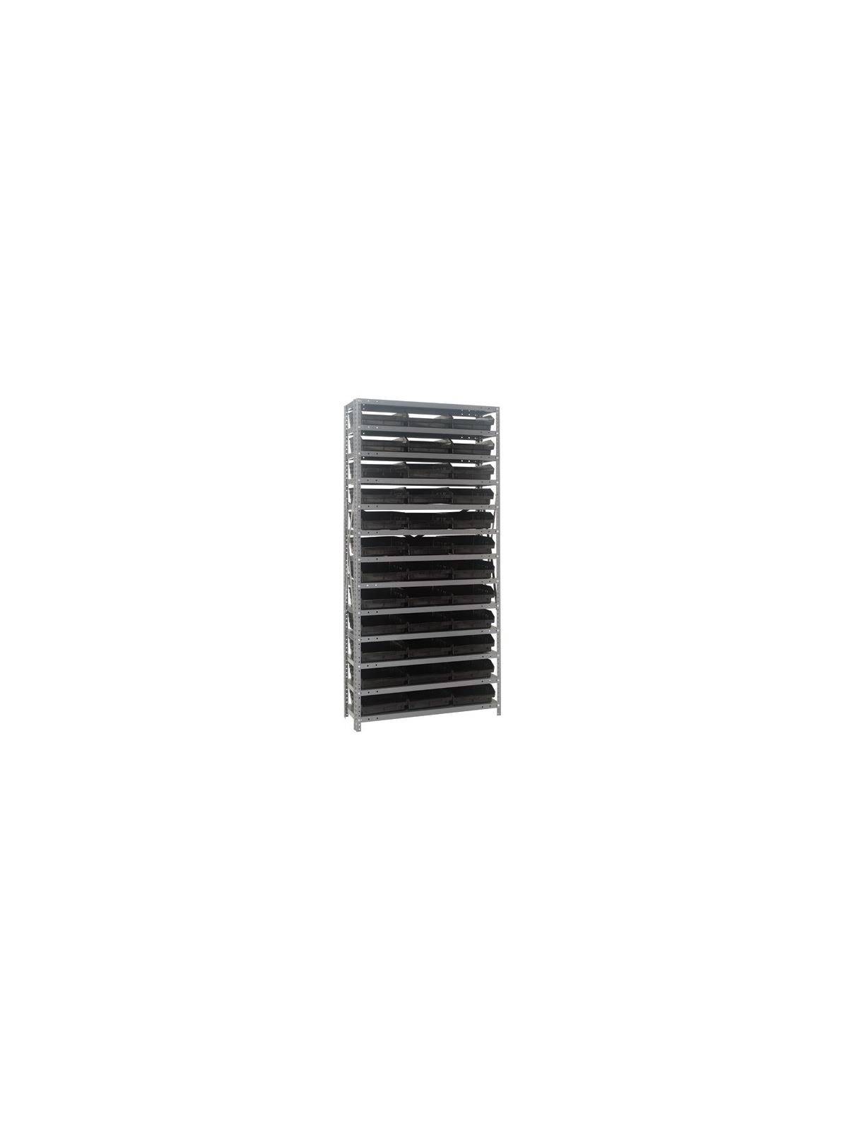 • Economical bin storage system includes durable Plastic Shelf Bins and a 36"W standard shelving.