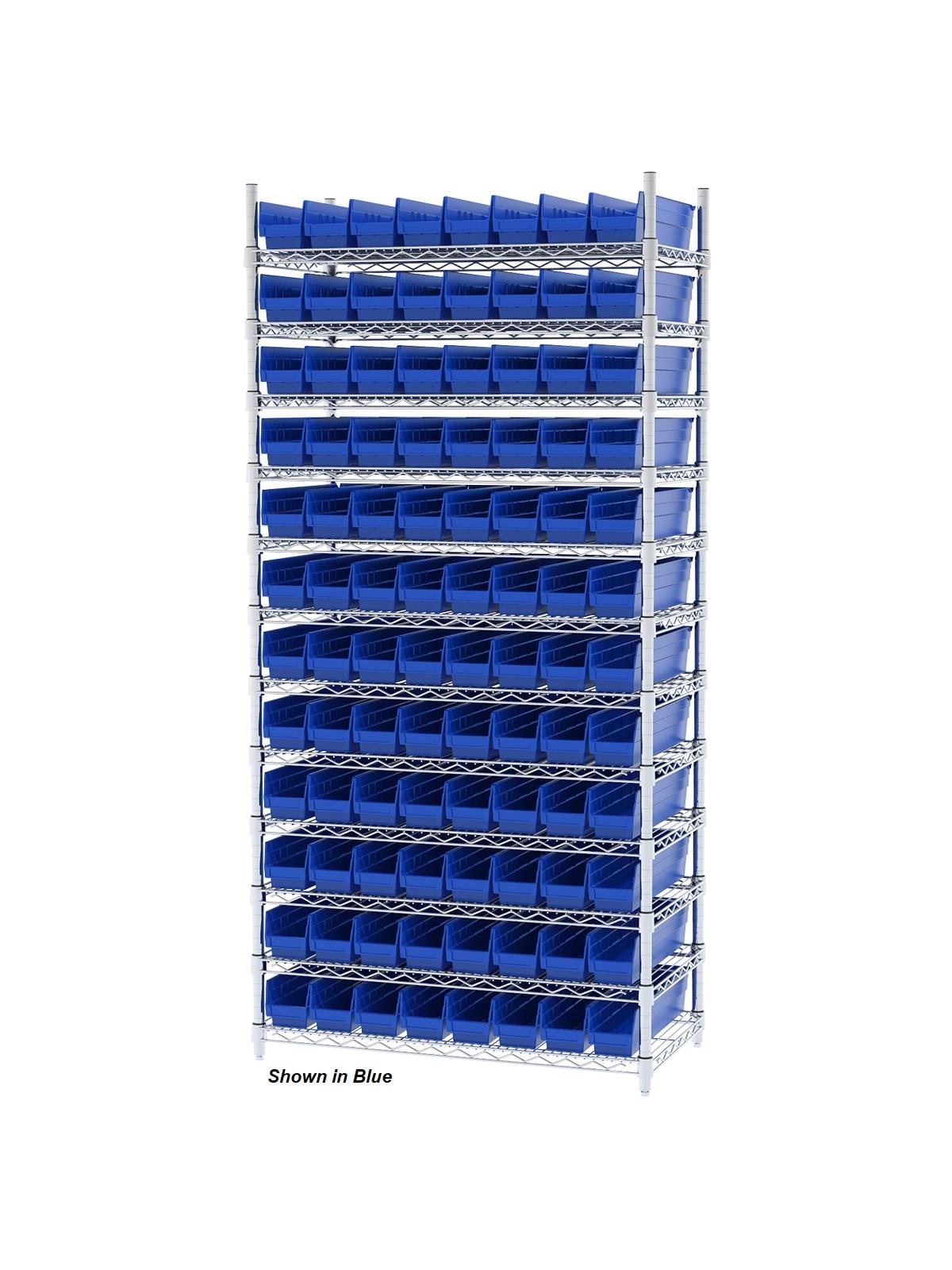 Shelf Bin Wire Systems can be configured for use with 36, 48, 60 or 96 bins providing a versatile system for storage and material handling. Durable and strong polypropylene shelf bins outlast corrugated bins. Bins available in Blue, Red, Yellow, or Semi-Clear. FOB Shipping Point.