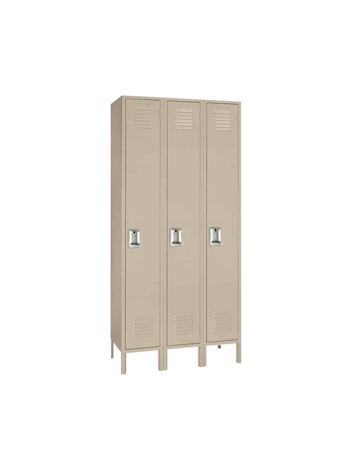 Single Tier Lockers - Features steel recessed handle and hooks for hanging clothing and other items. Single tier lockers also include a separate shelf.