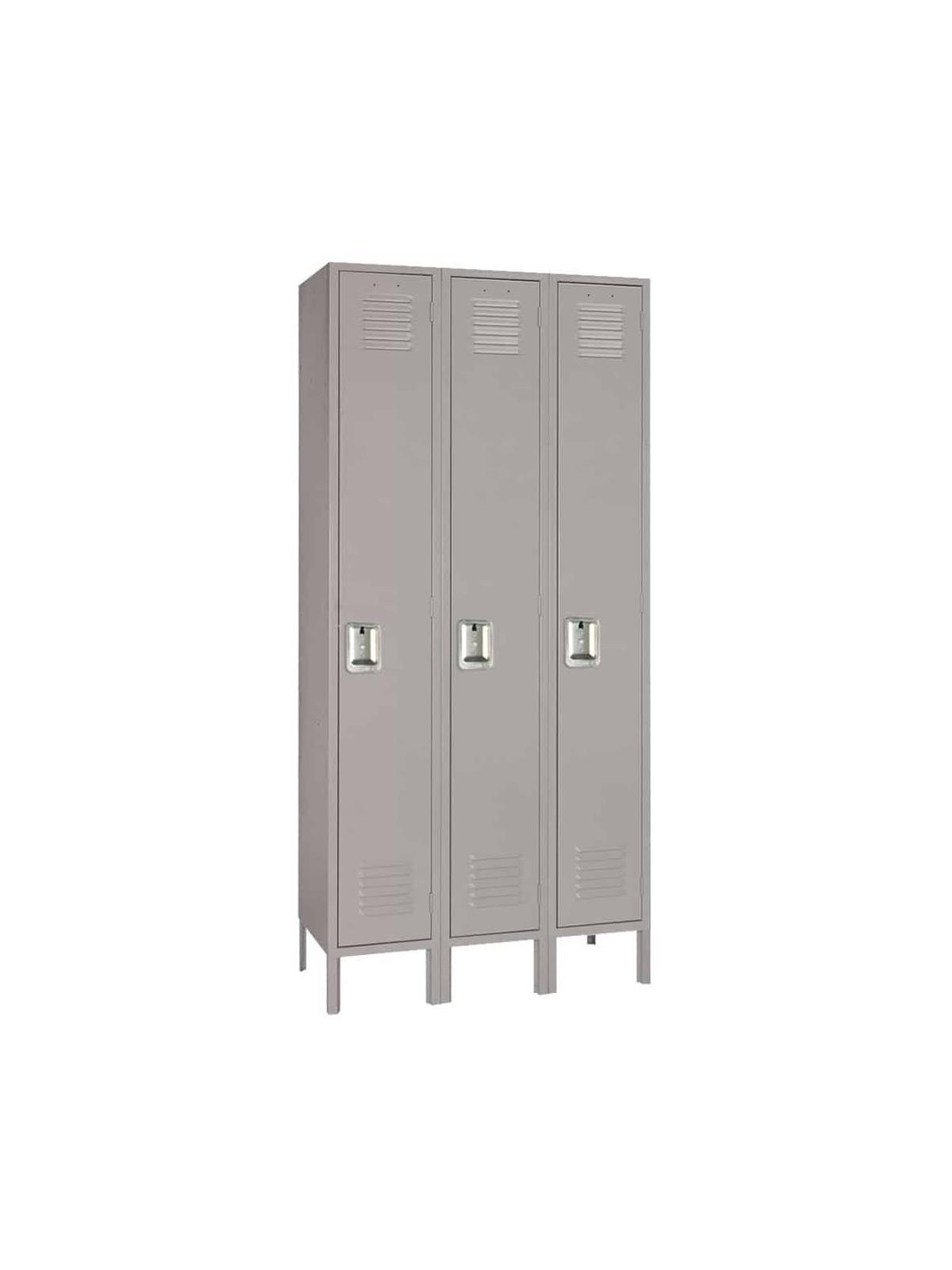Lockers feature louvered doors for ventilation. Padlock attachments are an integral part of the handle (padlock not included). Factory assembled lockers feature pop rivet construction. FOB Shipping Point.