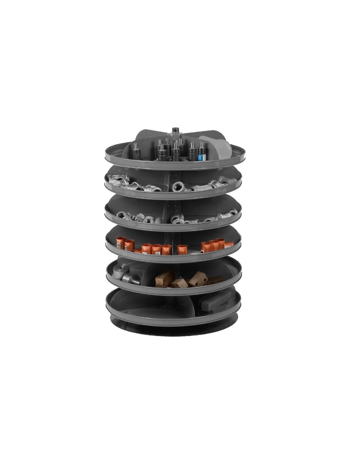 When space is at a premium, Rotabin® is the answer. Revolving shelves turn easily, independently...even when fully loaded. Made of heavy gauge steel for hard daily use. Available in Gray powder coat. FOB Shipping Point.