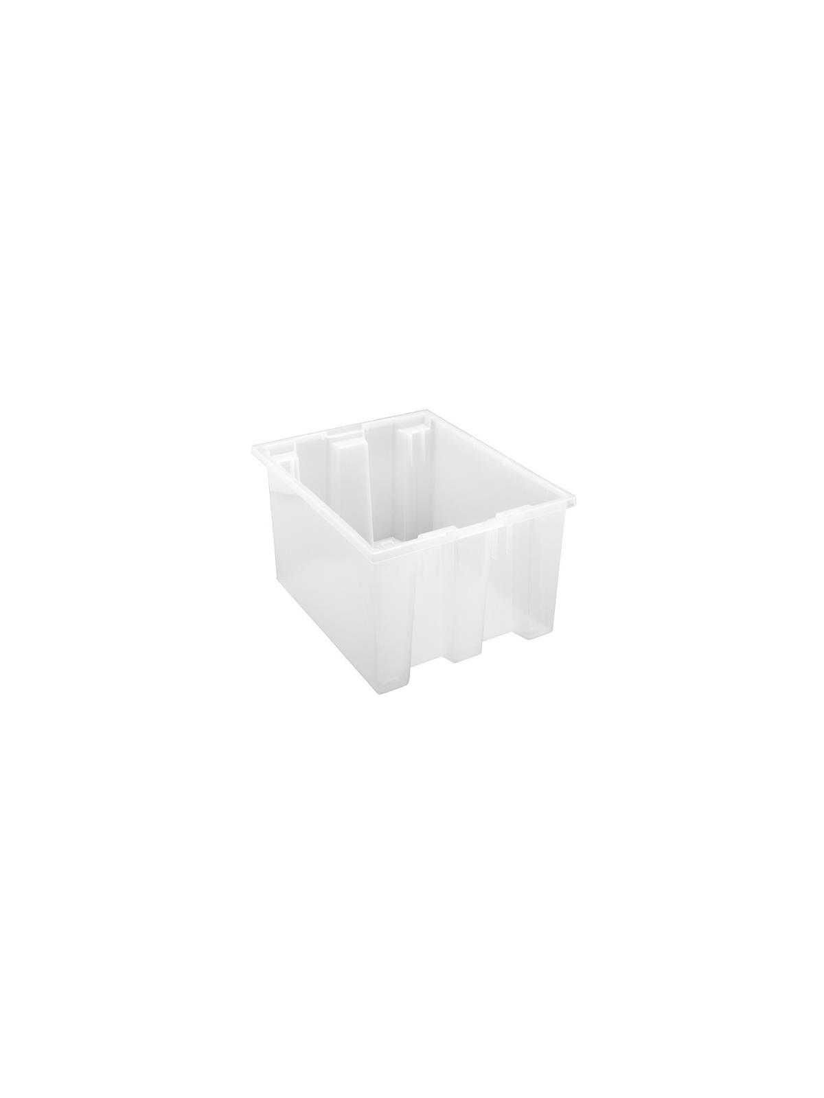 High density polypropylene, injection molded for uniform wall thickness and added strength. Lids snap tightly and securely for a safe fit. Quick 180° turn offers space-saving stacking and nesting. Stacks 6 high. Fits 48" x 40" pallets (6 SNT190, 4 SNT230 per level). Usable in temperatures from -­10° to 250°F. Available in Gray, Blue, Red or Clear. Optional clear, see-thru Stack and Nest Label Holder (HSNH010) and optional Dolly (HDLY-3018) available. FOB Shipping Point.