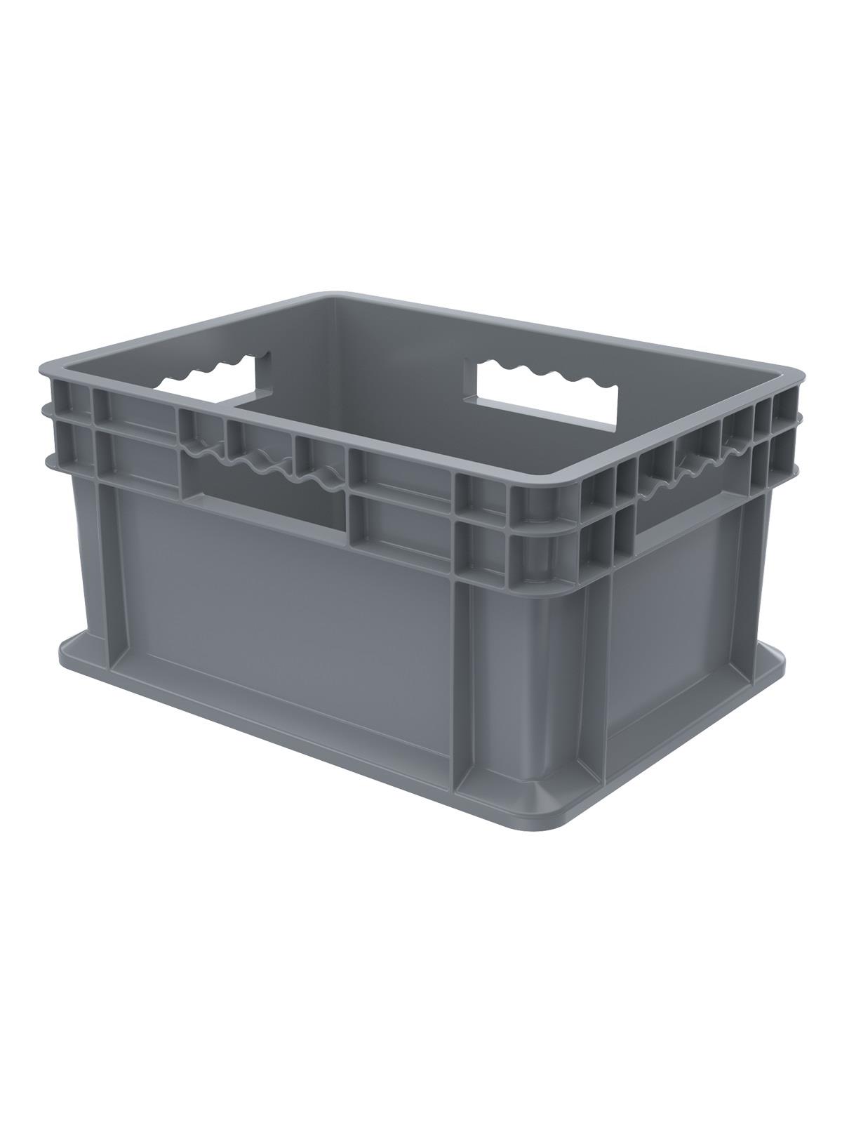 These straight wall containers have smooth inner walls that make cleaning easy and sanitary. The mesh sides allow excellent hot or cold air ventilation. Manufactured from injection-molded high-density polyethylene. Available in 4 sizes and 3 styles. Gray in color. FOB Shipping Point.