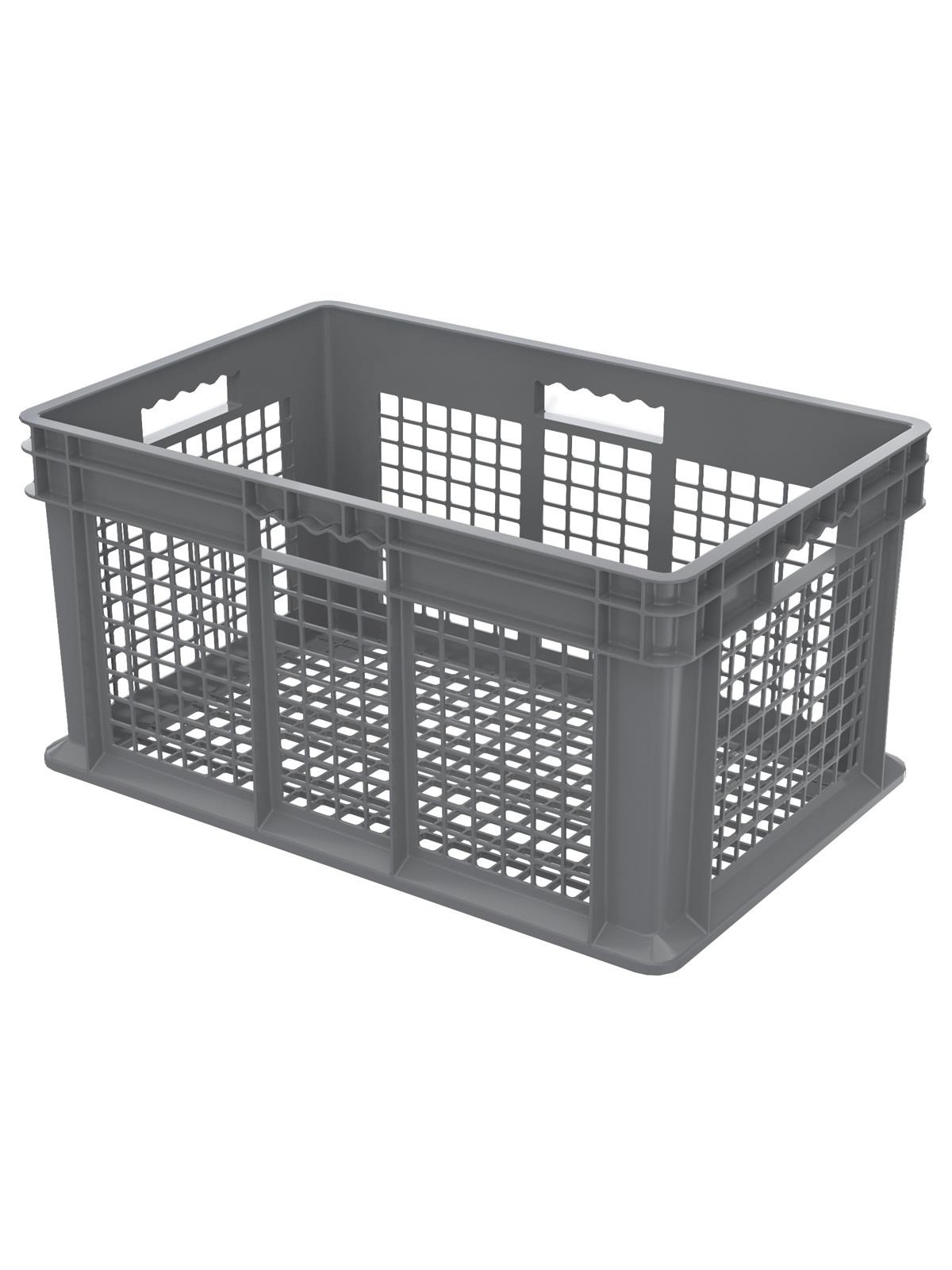 These straight wall containers have smooth inner walls that make cleaning easy and sanitary. The mesh sides allow excellent hot or cold air ventilation. Manufactured from injection-molded high-density polyethylene. Available in 4 sizes and 3 styles. Gray in color. FOB Shipping Point.