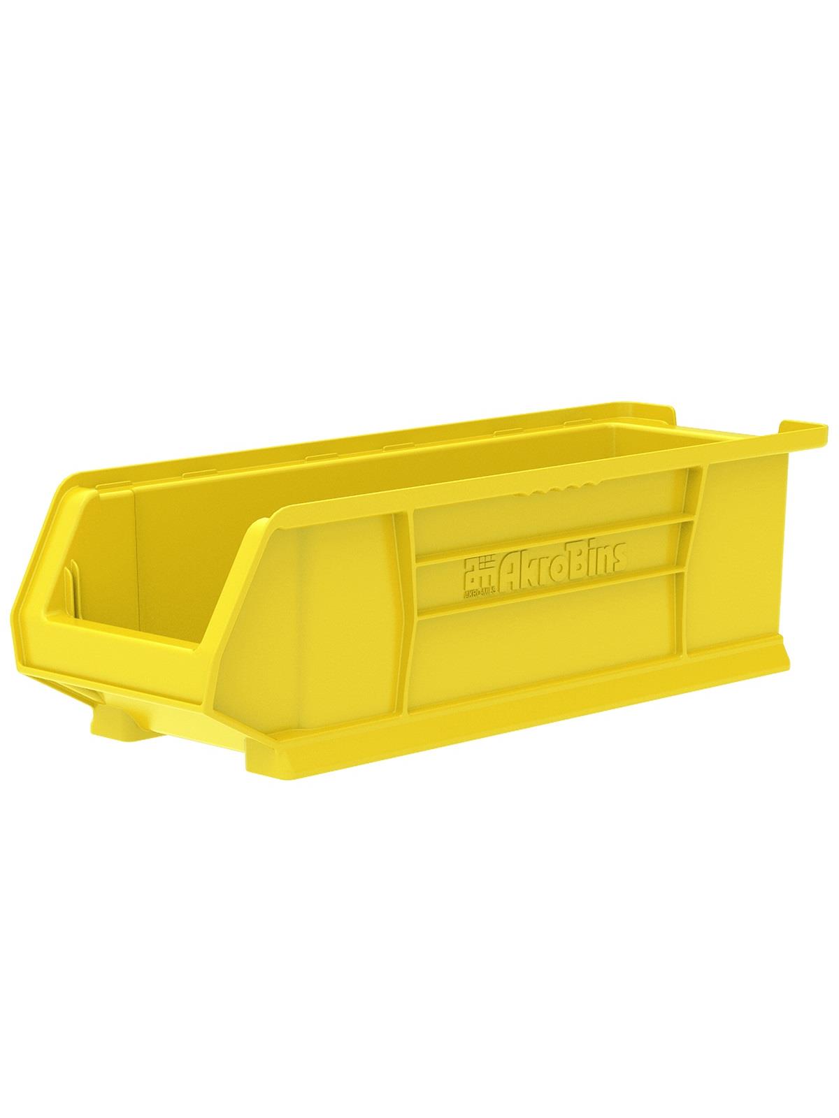 • Heavy-duty bins securely stack atop each other -- or sit on shelving.
