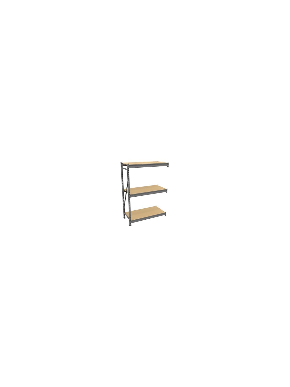 Features adjustable shelves on 2" increments for maximum use of vertical space. Assembly is quick and easy -- beams attach to the frames in seconds without tools. Rolled formed steel beams provide support at front and rear of shelf edges. Additional support is provided by front-to-back center braces. Racks are available in heights of 72", 96" and 120"; widths of 48", 72" and 96" and depths of 24", 36" and 48". Select particleboard decking or corrugated steel decking. Starter units and add-on units have 3 shelf levels.  Additional shelf levels are available to increase capacity. Begin each row of shelving with a starter and use add-on units to complete row. Medium Gray powder-coated paint finish. Note -- bulk storage racks should be hand loaded only. FOB Shipping Point.