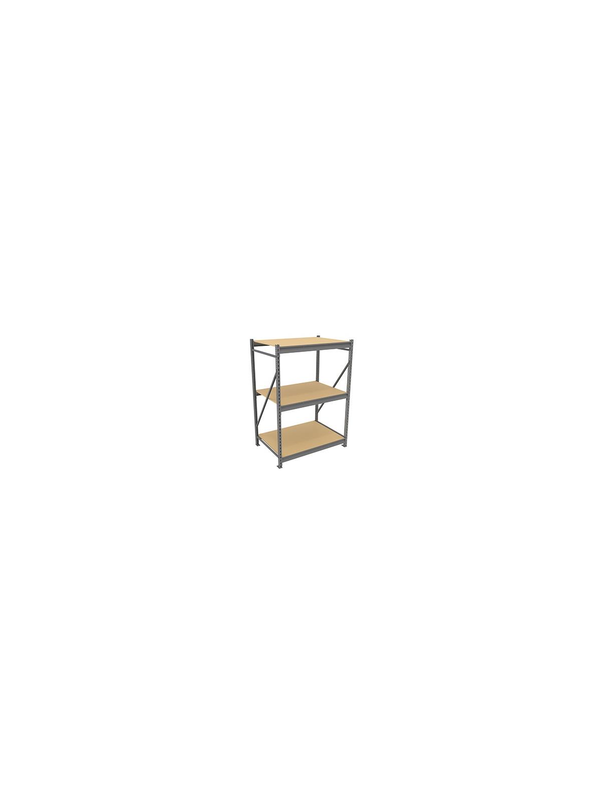 Features adjustable shelves on 2" increments for maximum use of vertical space. Assembly is quick and easy -- beams attach to the frames in seconds without tools. Rolled formed steel beams provide support at front and rear of shelf edges. Additional support is provided by front-to-back center braces. Racks are available in heights of 72", 96" and 120"; widths of 48", 72" and 96" and depths of 24", 36" and 48". Select particleboard decking or corrugated steel decking. Starter units and add-on units have 3 shelf levels.  Additional shelf levels are available to increase capacity. Begin each row of shelving with a starter and use add-on units to complete row. Medium Gray powder-coated paint finish. Note -- bulk storage racks should be hand loaded only. FOB Shipping Point.