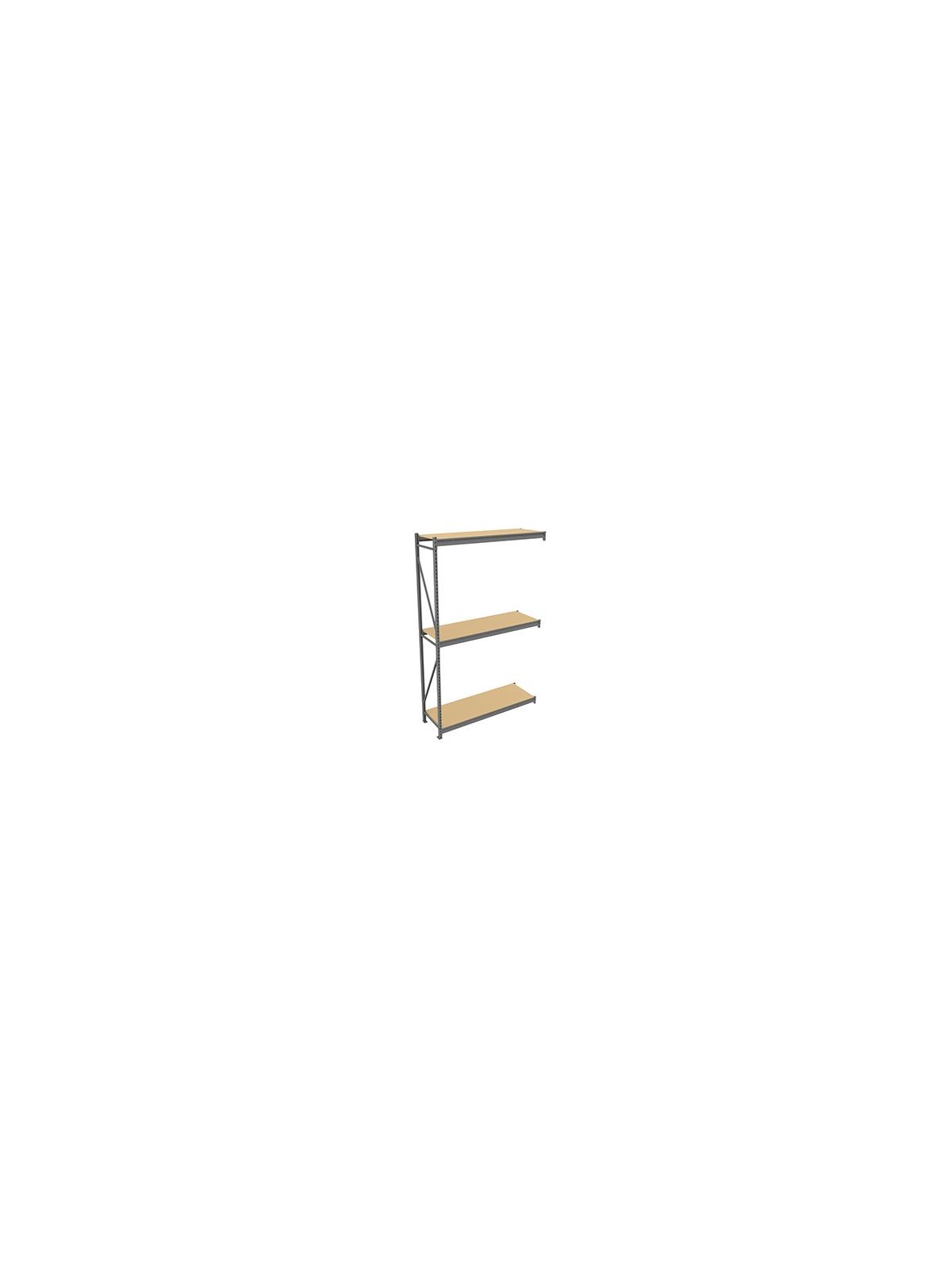 Features adjustable shelves on 2" increments for maximum use of vertical space. Assembly is quick and easy -- beams attach to the frames in seconds without tools. Rolled formed steel beams provide support at front and rear of shelf edges. Additional support is provided by front-to-back center braces. Racks are available in heights of 72", 96" and 120"; widths of 48", 72" and 96" and depths of 24", 36" and 48". Select particleboard decking or corrugated steel decking. Starter units and add-on units have 3 shelf levels.  Additional shelf levels are available to increase capacity. Begin each row of shelving with a starter and use add-on units to complete row. Medium Gray powder-coated paint finish. Note -- bulk storage racks should be hand loaded only. FOB Shipping Point.