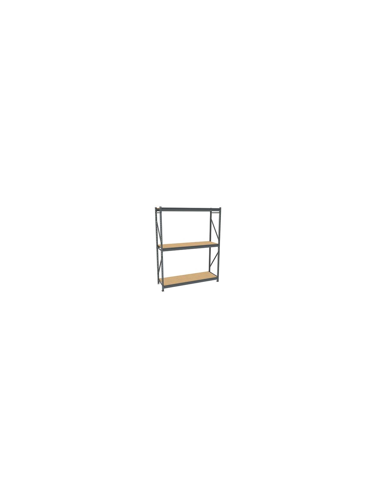 Features adjustable shelves on 2" increments for maximum use of vertical space. Assembly is quick and easy -- beams attach to the frames in seconds without tools. Rolled formed steel beams provide support at front and rear of shelf edges. Additional support is provided by front-to-back center braces. Racks are available in heights of 72", 96" and 120"; widths of 48", 72" and 96" and depths of 24", 36" and 48". Select particleboard decking or corrugated steel decking. Starter units and add-on units have 3 shelf levels.  Additional shelf levels are available to increase capacity. Begin each row of shelving with a starter and use add-on units to complete row. Medium Gray powder-coated paint finish. Note -- bulk storage racks should be hand loaded only. FOB Shipping Point.