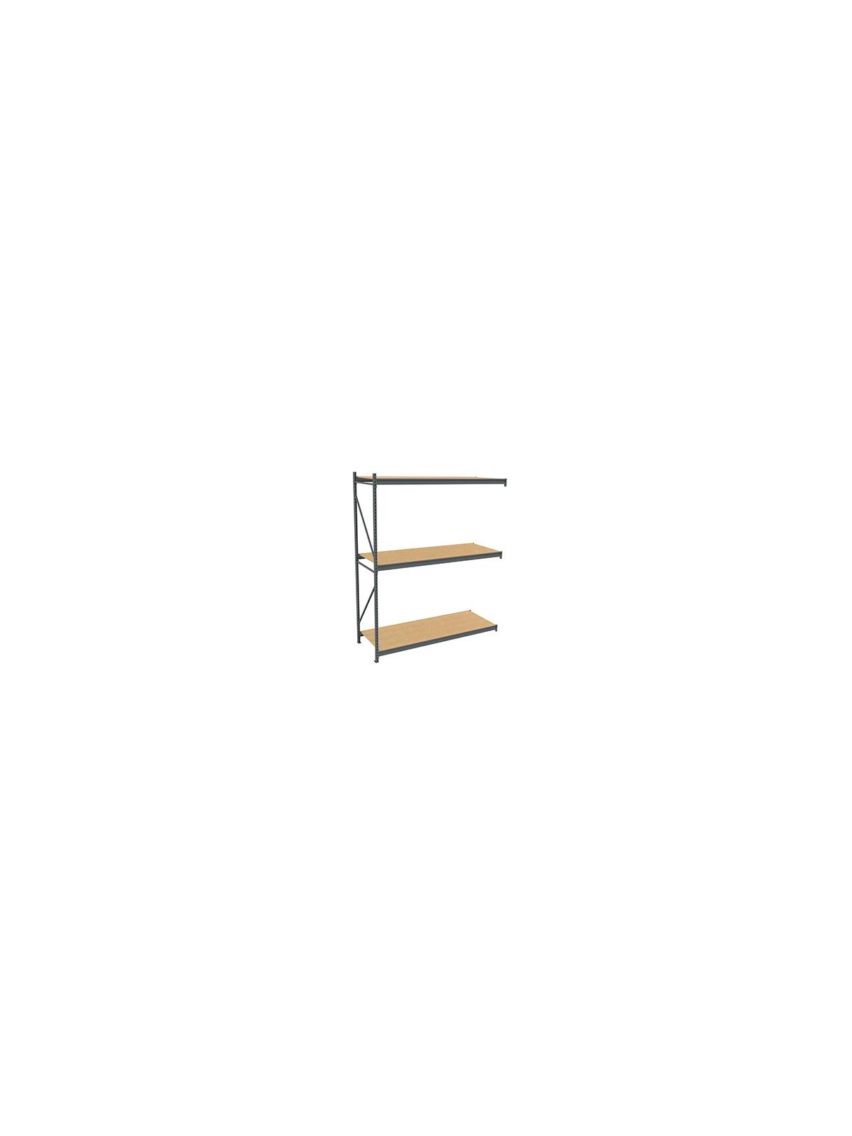 Features adjustable shelves on 2" increments for maximum use of vertical space. Assembly is quick and easy -- beams attach to the frames in seconds without tools. Rolled formed steel beams provide support at front and rear of shelf edges. Additional support is provided by front-to-back center braces. Racks are available in heights of 72", 96" and 120"; widths of 48", 72" and 96" and depths of 24", 36" and 48". Select particleboard decking or corrugated steel decking. Starter units and add-on units have 3 shelf levels.  Additional shelf levels are available to increase capacity. Begin each row of shelving with a starter and use add-on units to complete row. Medium Gray powder-coated paint finish. Note -- bulk storage racks should be hand loaded only. FOB Shipping Point.