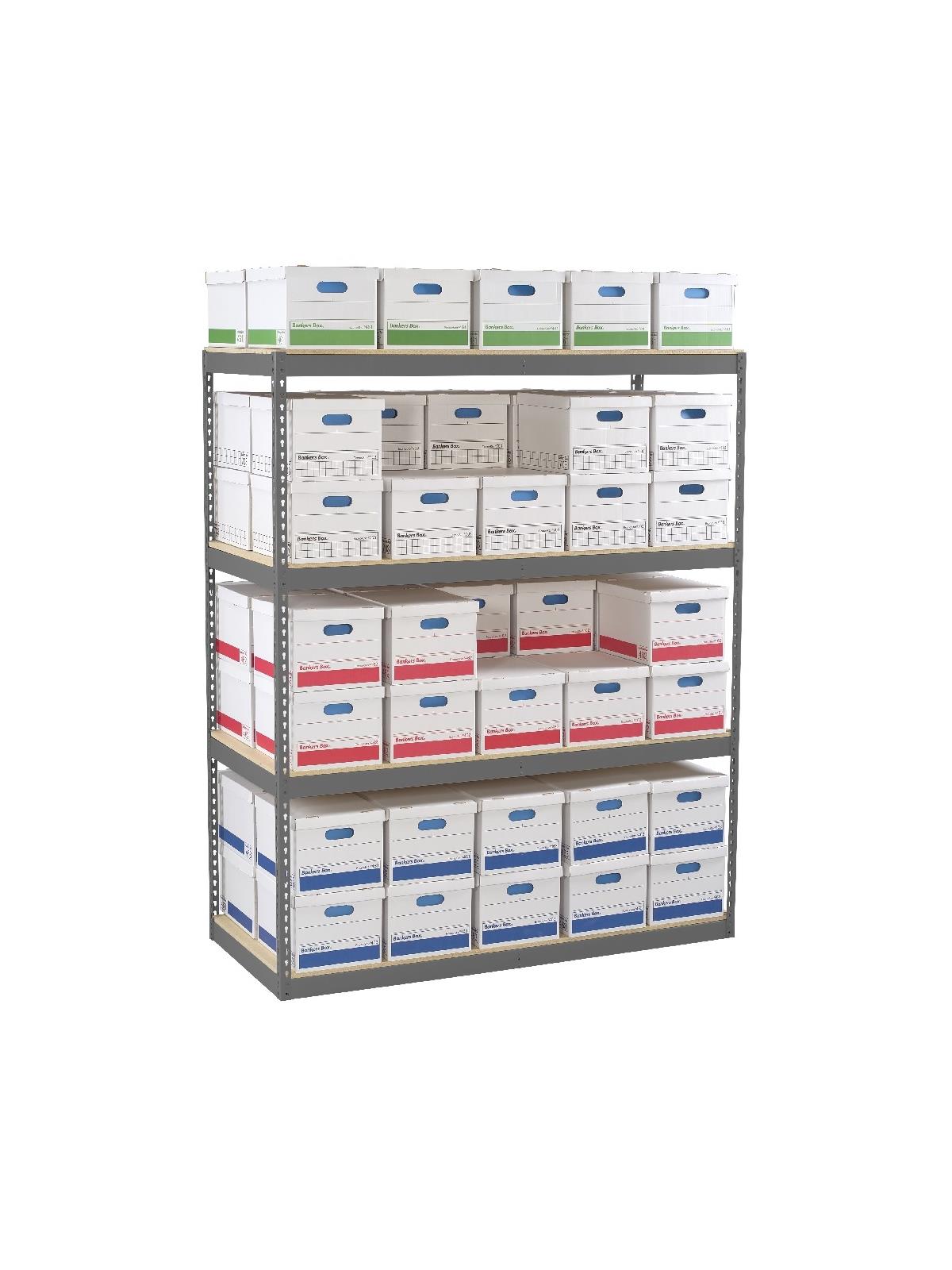 Rack is designed to hold record storage boxes for archival purposes. Fast and easy retrieval of records. Sand or Medium Gray - please specify color in comments section when ordering. FOB Shipping Point.