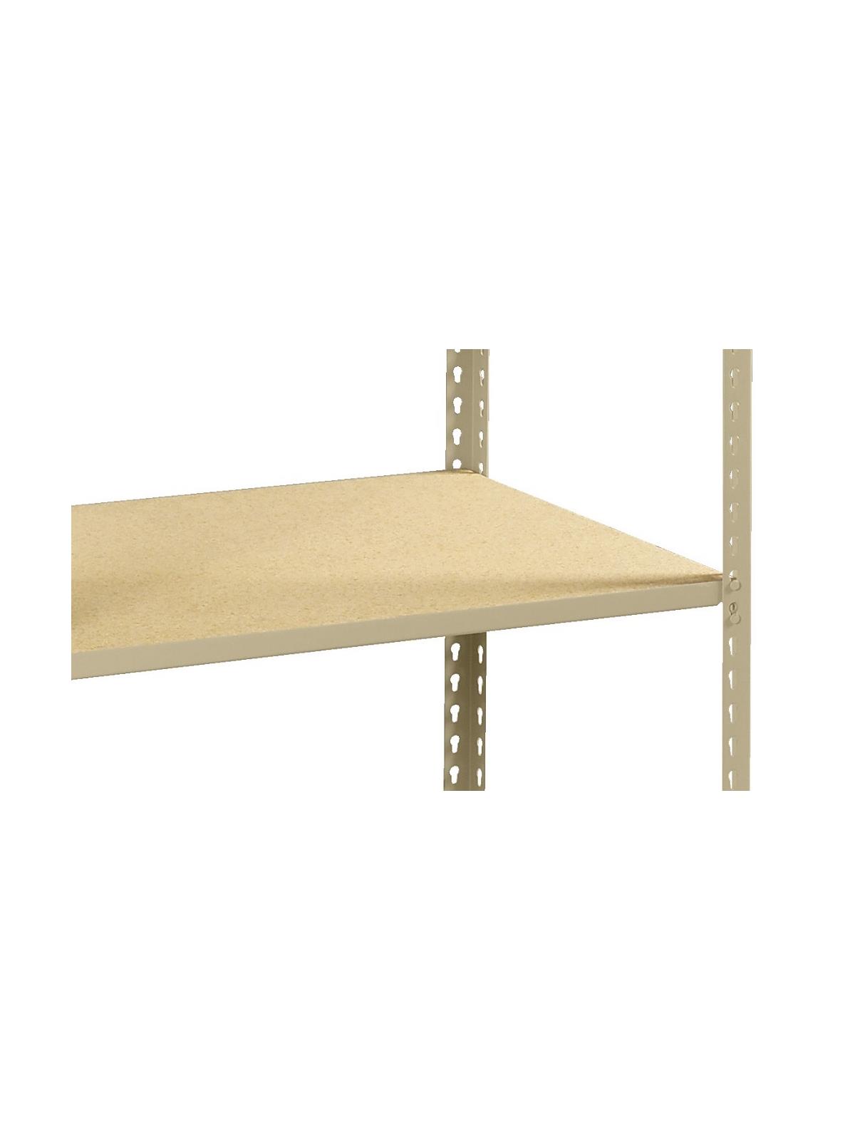 Built with double rivet design and keyhole slots to form a rigid framework. Assembles easily and quickly with only a rubber mallet. The design allows access to the shelves from all sides of the unit. Shelves are supported on all 4 sides, except the second and fourth shelves that are supported front and back. The units have 5 shelf levels (4 openings). Buy the unit with 5/8" particle board decking. Available in Sand or Medium Gray, specify in comments when ordering. FOB Shipping Point.