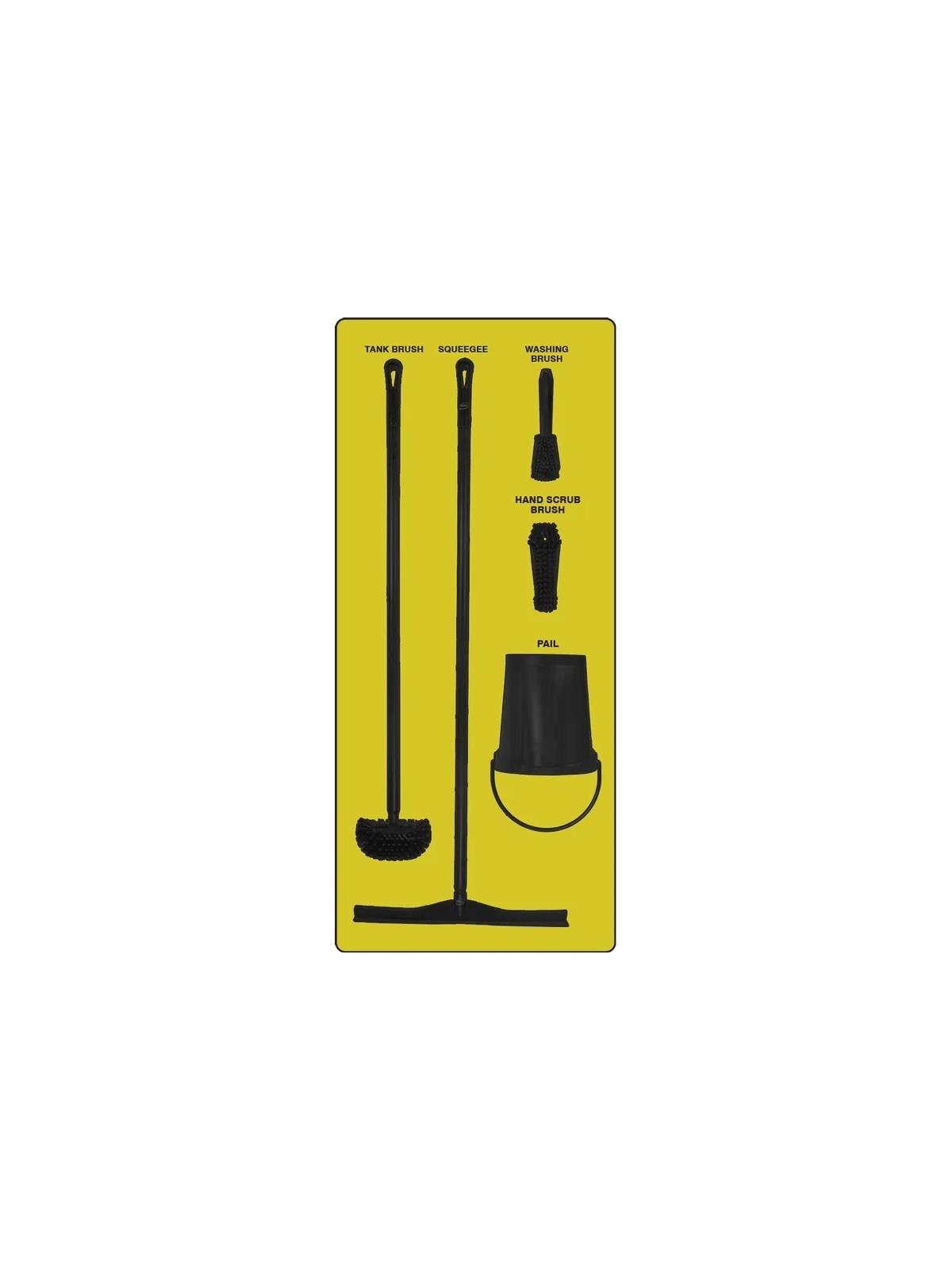 Designed for wet environments, color code your cleaning tools for distinct purposes. Keep general maintenance and cleaning tools organized, neat and always ready for use. Minimize downtime searching for tools by keeping them in one centralized location. Available in a variety of materials to match your environment: Ultra Aluma-Lite™, and Accu-Shield™. 4 color options available with your choice of either black or white tool shadows. Ideal for non-food contact & general maintenance. Promotes tool accessibility at point of use benefits. Maximizes efficiency, organization and accessibility. Minimizes wasted travel time to supply rooms/closets. Provides easy and fast janitorial solutions without added physical stress. Shadow Board Dimensions: 68"H x 30"W. Features 1/2" rounded corners and 3/8" mounting holes. Boards include mounting hardware for tools. Some assembly required: instruction and assembly hardware included. Due to size and/or weight, this product may need to ship LTL. FOB Shipping Point.