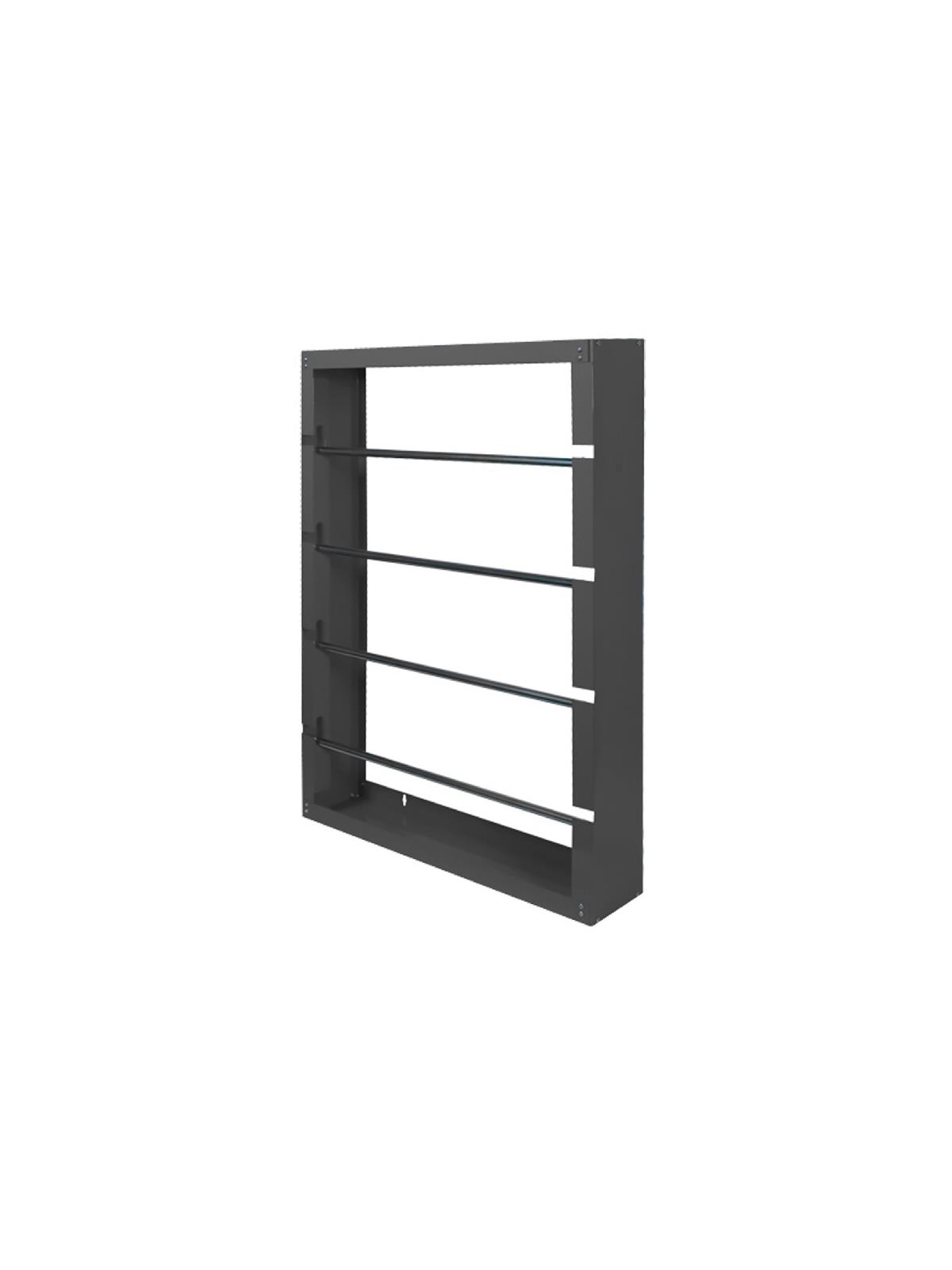 Prime cold rolled steel construction. Includes polished 5/8" dia. steel rods, making it easy to store different sized spools on the same rod. H368-95 can accommodate up to 10" dia. spools. Punched side panels allow for quick spool changes and the supplied ruled decal makes it easy to cut wire or tubing to the proper length. H383-95 has a handle for easy transport. Keyhole slots are provided for wall mounting. FOB Shipping Point.