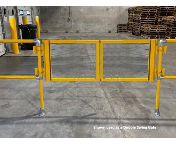 The adjustable swing gate is adjustable in 2" increments between the described smallest and largest sizes of each group option. Mounting hardware is included with each gate. The stopping position can be adjusted with the hardware included. FOB Shipping Point.